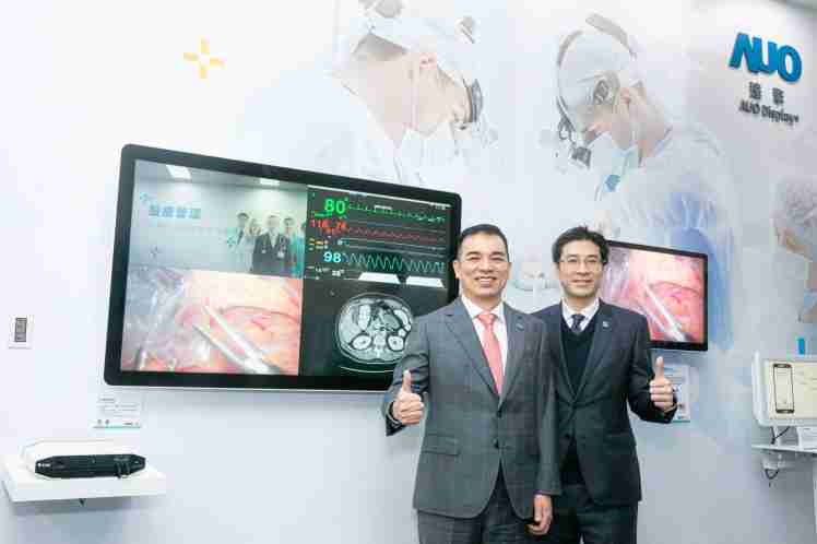 菠菜论坛旗下达擎于 2021 台湾医疗科技展,,,,携手医疗场域生态圈合作伙伴,,针对智慧手术室、、医疗检测及医疗管理三大领域,,,,展出八大解决方案,,,,展现达擎在高质量医疗影像以及软硬整合的实力。。。(左:菠菜论坛光电总经理暨营运长 柯富仁;右:达擎总经理 廖世宏)