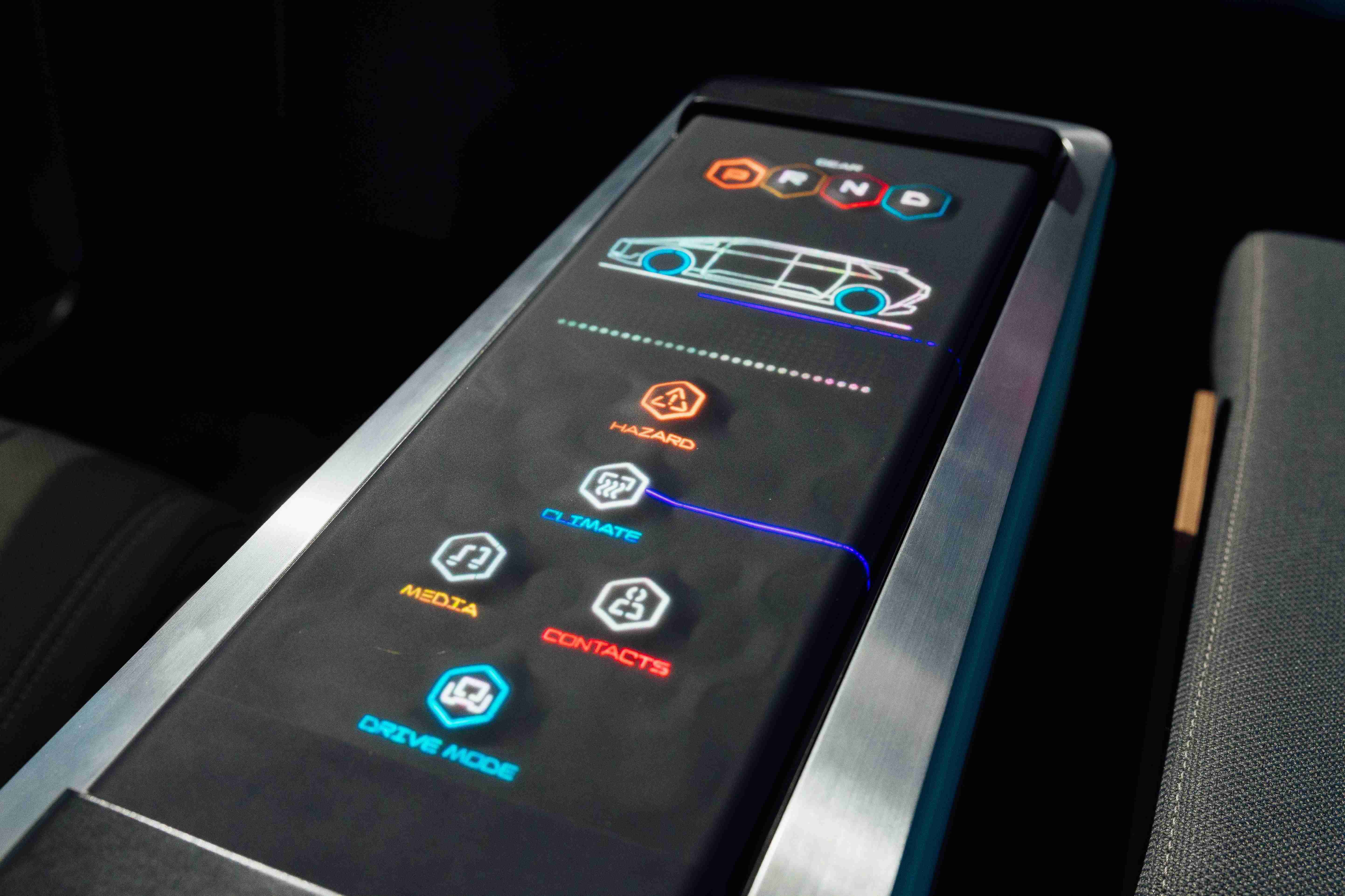 多变形态中控显示(Morphing Center Control)拥有动态变化的表面,,,平时常态显示车辆功能,,,进一步操作时,,,,则会隆起成为3D 按钮,,并在触控时以震动回馈,,以精细的操作开创人机互动新境界。。。。 ![]()