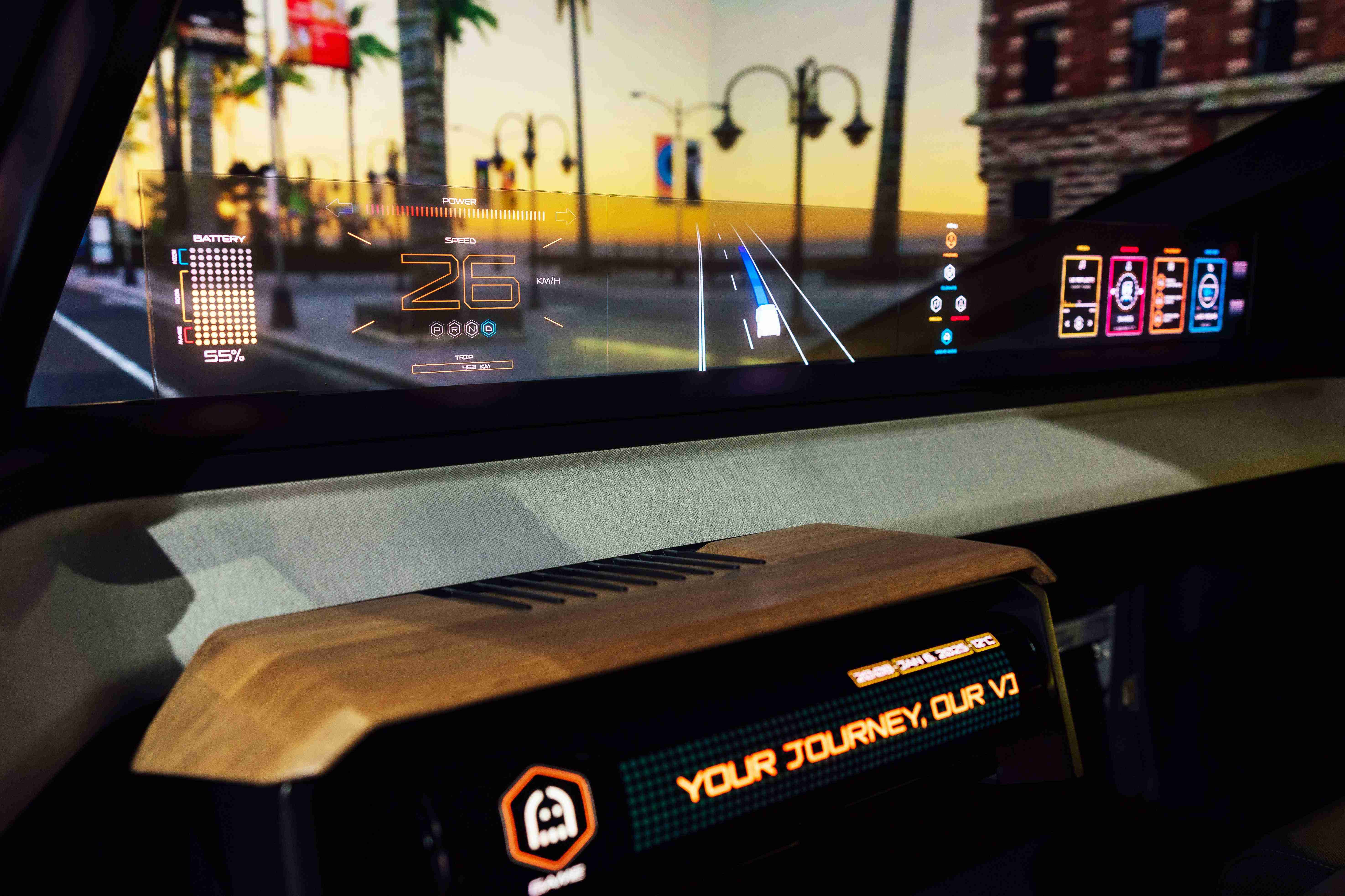 透过XR 互动智慧窗(XR Interactive Window)展现强大的运算能力,,,,搭配AI人工智慧自动生成运算,,未来当车辆行经途中,,,,只需在车窗上圈选对应之车外标的,,,即可在萤幕中与其互动、、、获取相关资讯,,,,让乘客享有身历其境、、、互动式且逼真的体验。。
