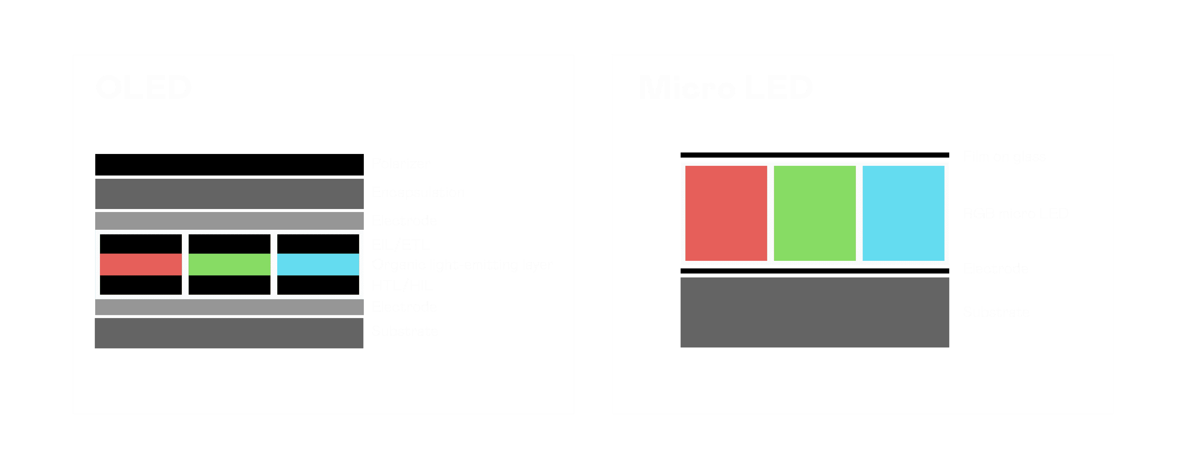 以 LED 做为显示画素,,可让 LED 的发光效率发挥到极致,,,从而让显示器具备优异的亮度表现,,不论是在户外或室内,,,,均具备出众的显示效果。。。同时,,与使用有机材料的 OLED 相比,,LED 具备更稳定、、寿命更长的特性,,不仅不会有画面烙印问题,,,,而且更不容易出现故障、、坏点。。。